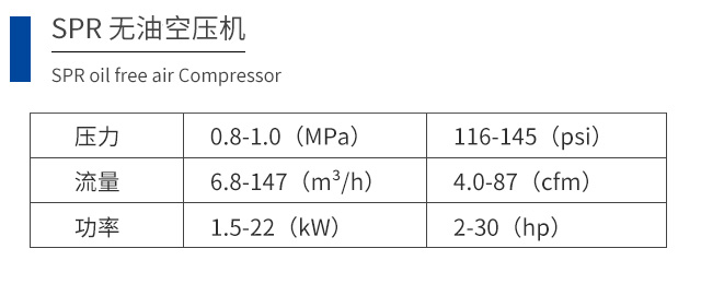 ● 無(wú)油空壓機(jī)力范圍:8 至 10bar
