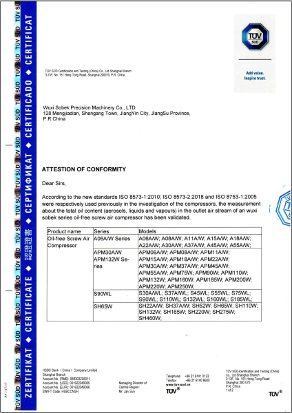● 整機(jī)通過TÜV檢測機(jī)構(gòu)的0級無油認(rèn)證。