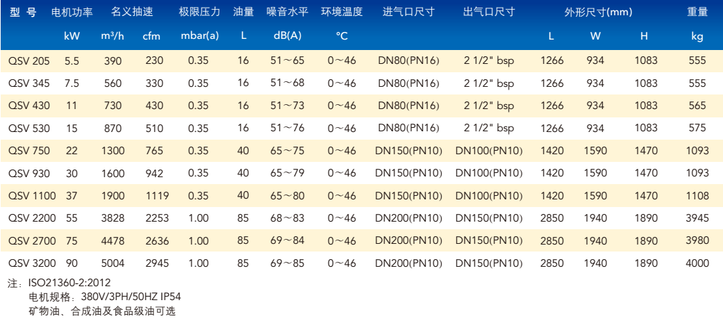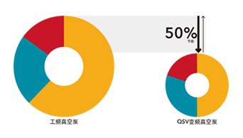 QSV 系列真空泵相比其它技術(shù),消耗的能源僅是它們的 50% 左右。在同等流量范圍,QSV 真空泵是市場上最高效的油潤滑式真空泵之一。其它技術(shù)與 QSV 系列相比(例如:油封式旋片泵),則顯得效率低、成本高(尤其在抽速>300m3/h)。