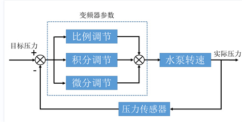實(shí)際壓力是靠壓力傳感器,或者遠(yuǎn)傳壓力表檢測(cè)出來(lái),再告訴變頻器的。變頻器收到實(shí)際壓力的數(shù)據(jù)后,再和目標(biāo)壓力進(jìn)行比對(duì),如果實(shí)際壓力比目標(biāo)壓力要小,在變頻器內(nèi)部,經(jīng)過(guò)PID運(yùn)算后,就會(huì)輸出一個(gè)遞增的頻率值,這個(gè)頻率值就是對(duì)應(yīng)水泵轉(zhuǎn)速的,這時(shí),水泵轉(zhuǎn)速就升高,管道中的實(shí)際壓力也就會(huì)隨著增大。